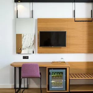 An air conditioner, along with a mini-fridge-bar, provide in-room convenience at this Volos hotel. They feature an elegant décor and elegant light wood furniture.