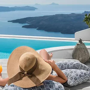 The Anteliz Suites Fira offers direct access to an outdoor swimming pool with hydromassage facilities and a hydro-massage tub.