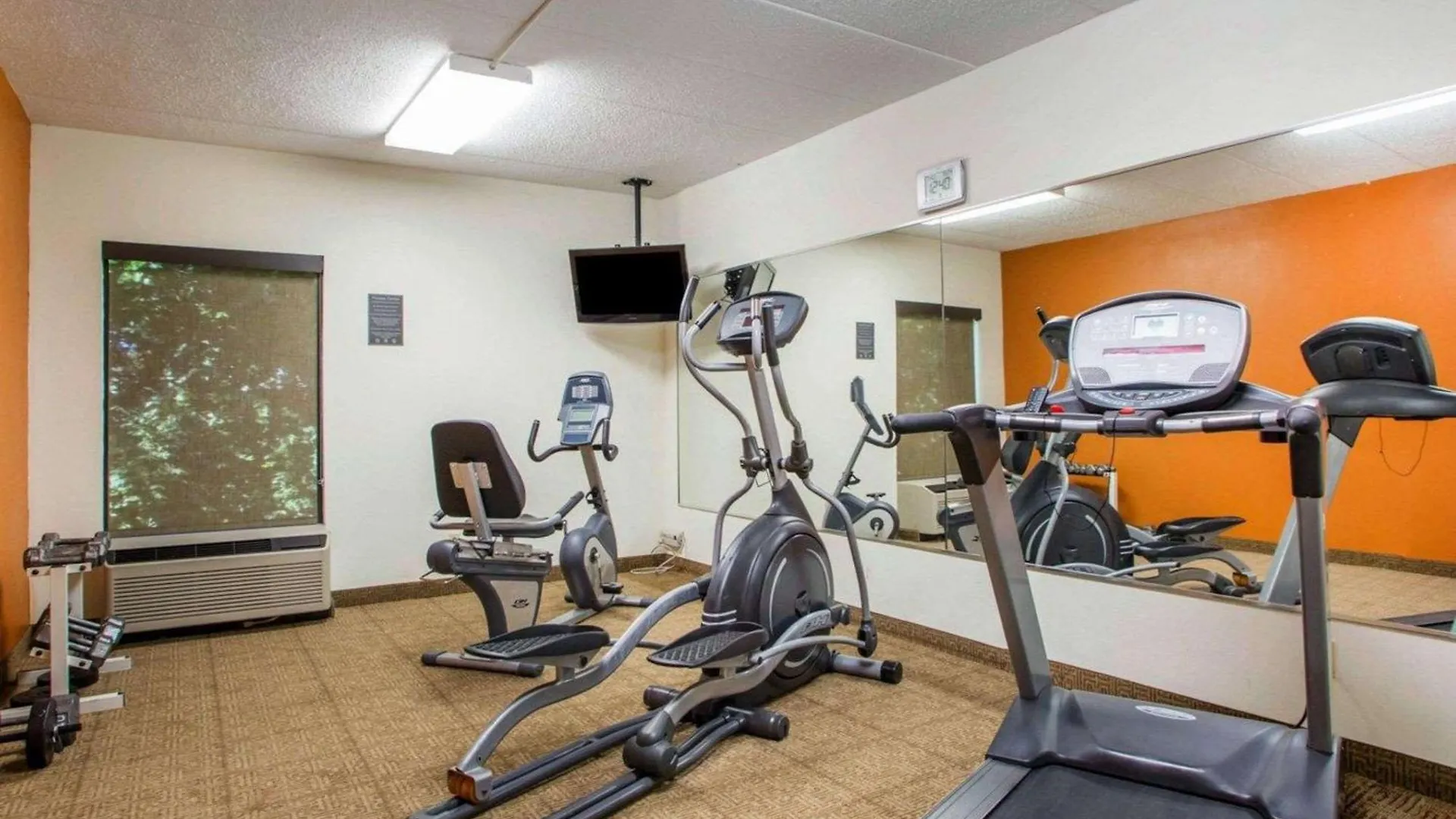Guests can work out in an exercise room during their stay.