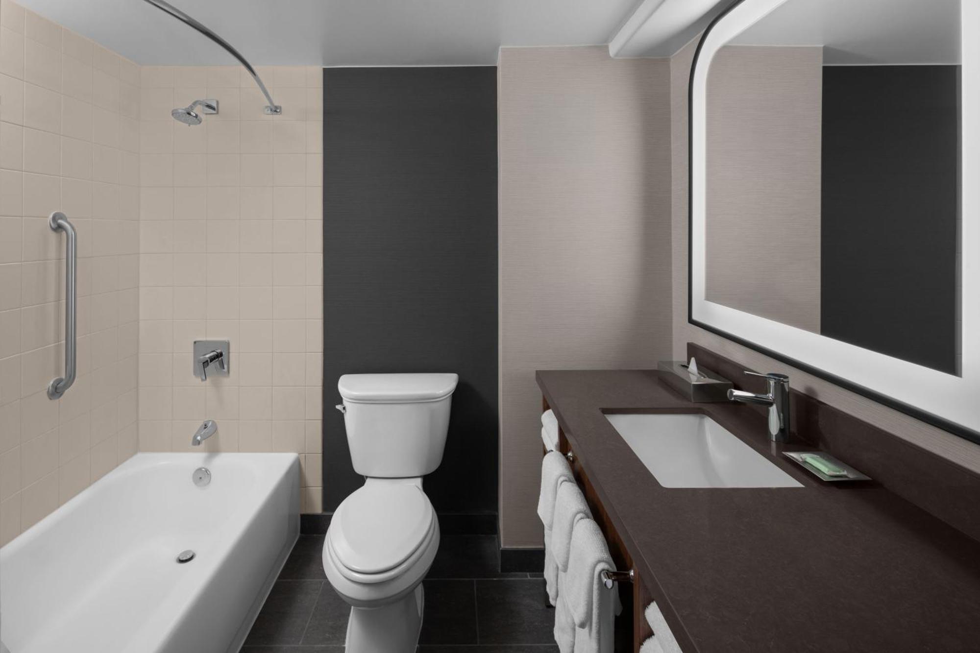 The Courtyard Pittsburgh offers 251 rooms, some of them feature a flat-screen TV with satellite channels, as well as comforts such as blackout curtains, an iron and ironing board, and an air conditioner. They are furnished with couch beds along with a writing table and a sofa bed. Providing a roll-in shower and a separate toilet, some bathrooms are also equipped with a hair dryer and bath sheets.