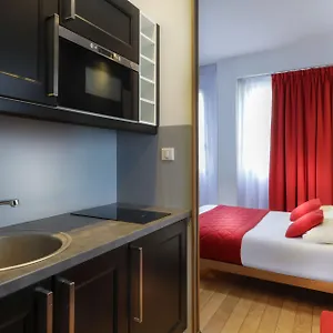 The rooms at the Ambre Paris feature a writing table, along with sound-proof windows for guests' convenience. A flat-screen TV with satellite channels, as well as comforts as an ironing set and an air conditioner are also featured. Offering a separate toilet and a shower, the bathrooms are fitted with hairdryers and bath sheets. A kitchenette with a microwave oven, an electric kettle, and refrigerators are available in a king room.