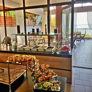 For your comfort, the spacious rooms come with an air conditioner. They are furnished with sound-proof windows, and modern amenities like a flat-screen TV with satellite channels. Also, there is a personal safe, a mini-fridge-bar provided. Nice touches include a bidet, a separate toilet, and a sink, along with hairdryers and bath sheets. Enjoy views of the sea, while staying at the Maranton Beach.