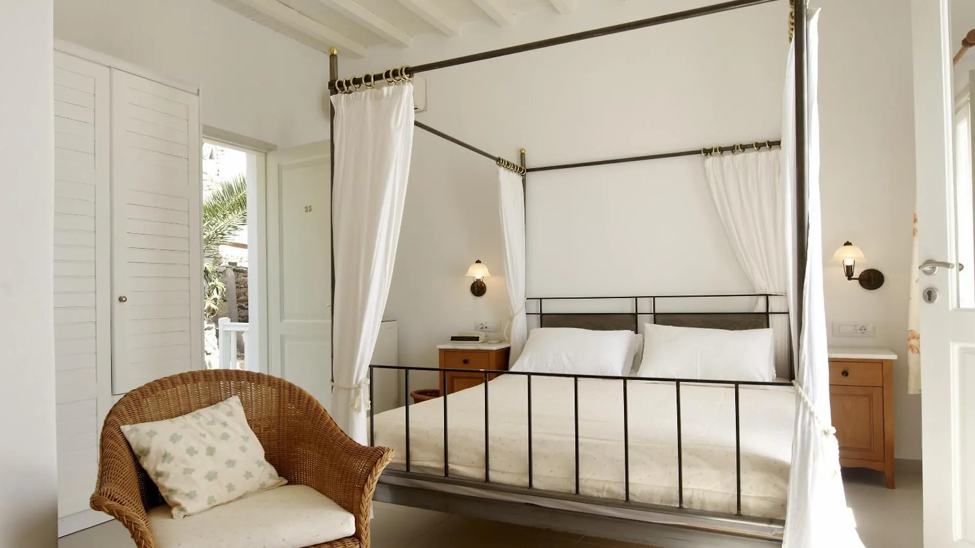 Mykonos View Hotel has 12 rooms appointed with complimentary wireless internet and a flat-screen TV with satellite channels, as well as self-catering options such as coffee/tea making equipment. Guestrooms also include an electric kettle and a fridge. Guests will make use of a hair dryer and towels in bathrooms equipped with a separate toilet and a shower. Some rooms look onto the Aegean Sea.