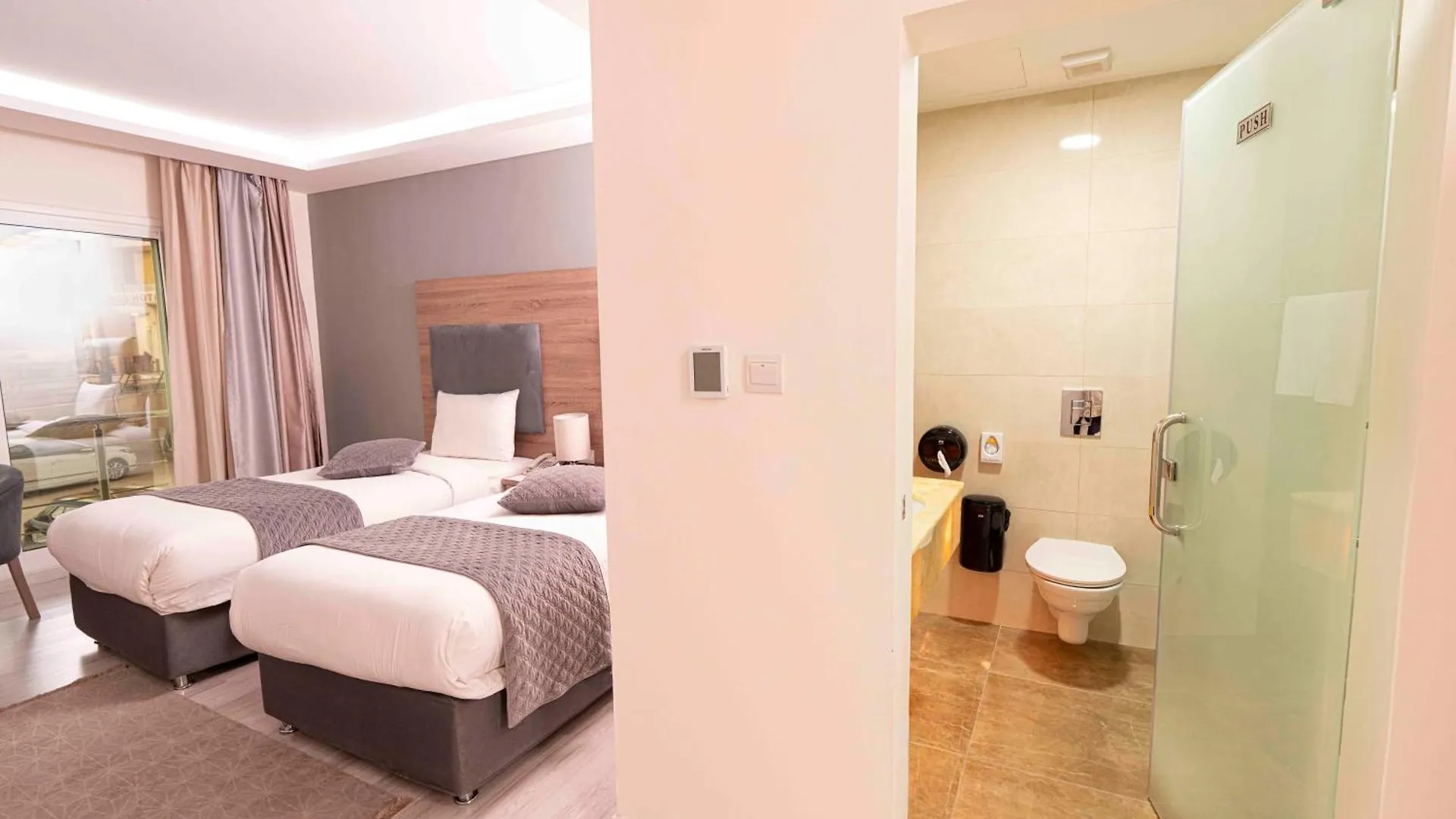 Petra Moon Hotel has 27 rooms with a seating area. A flat-screen TV with satellite channels along with a minibar fridge and coffee/tea making facilities are provided. Bedrooms come with extra-long beds. Bathroom essentials include a separate toilet and a shower as well as hair dryers and toiletries for guests' extra comfort.