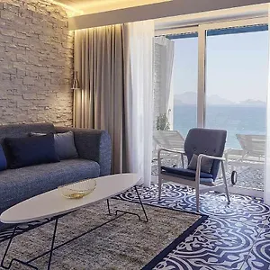 The Robinson Daidalos has 289 rooms, comprising an adjoining terrace and a balcony. High-speed internet and a flat-screen TV with satellite channels, along with tea and coffee-making facilities, are offered. They come equipped with tea and coffee making equipment, and a refrigerator. Bathroom essentials include a separate toilet and a shower, and such comforts as hair dryers and bath sheets.
