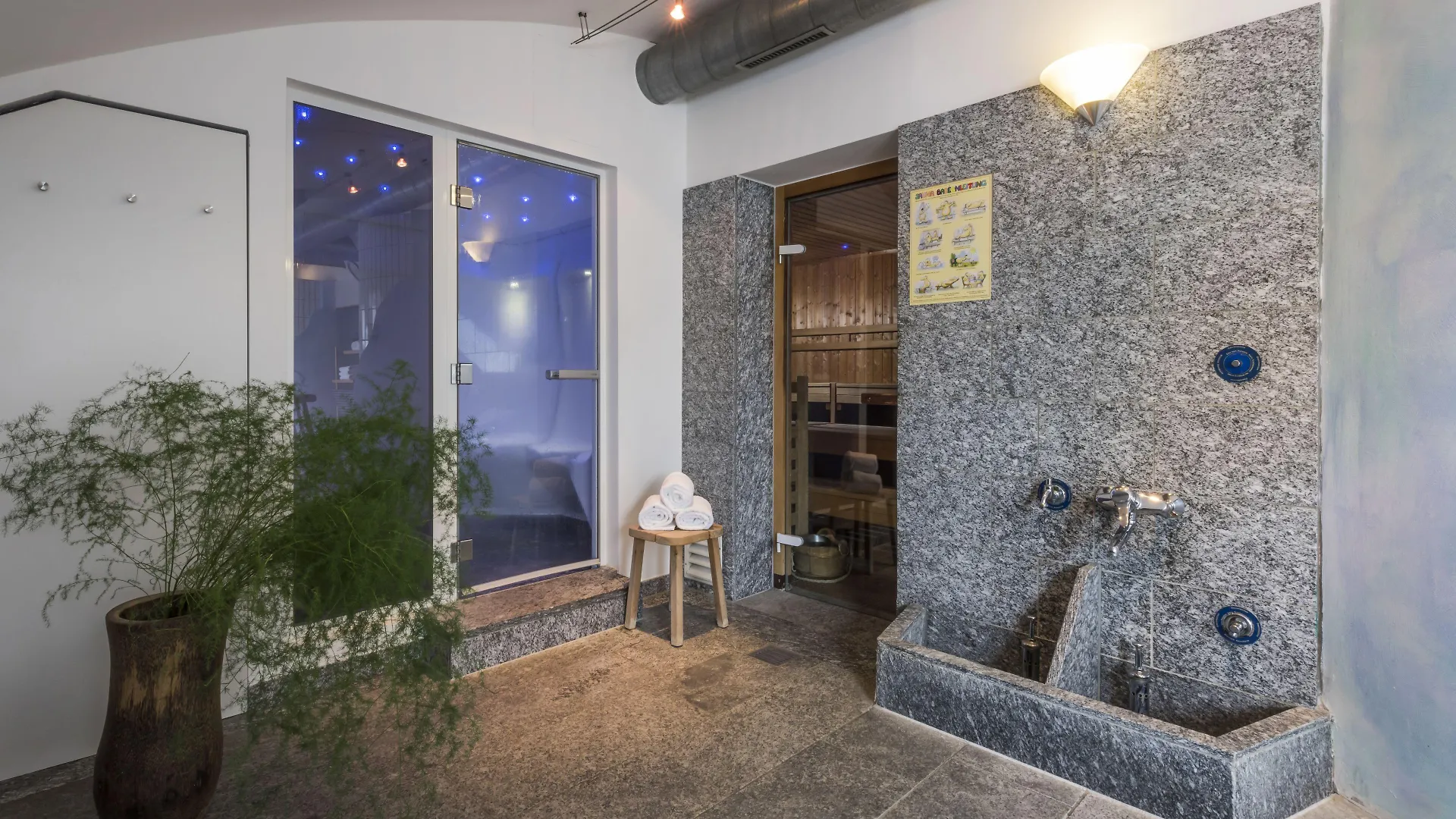 Treatment options, including a steam room and a sauna, are provided on site.
