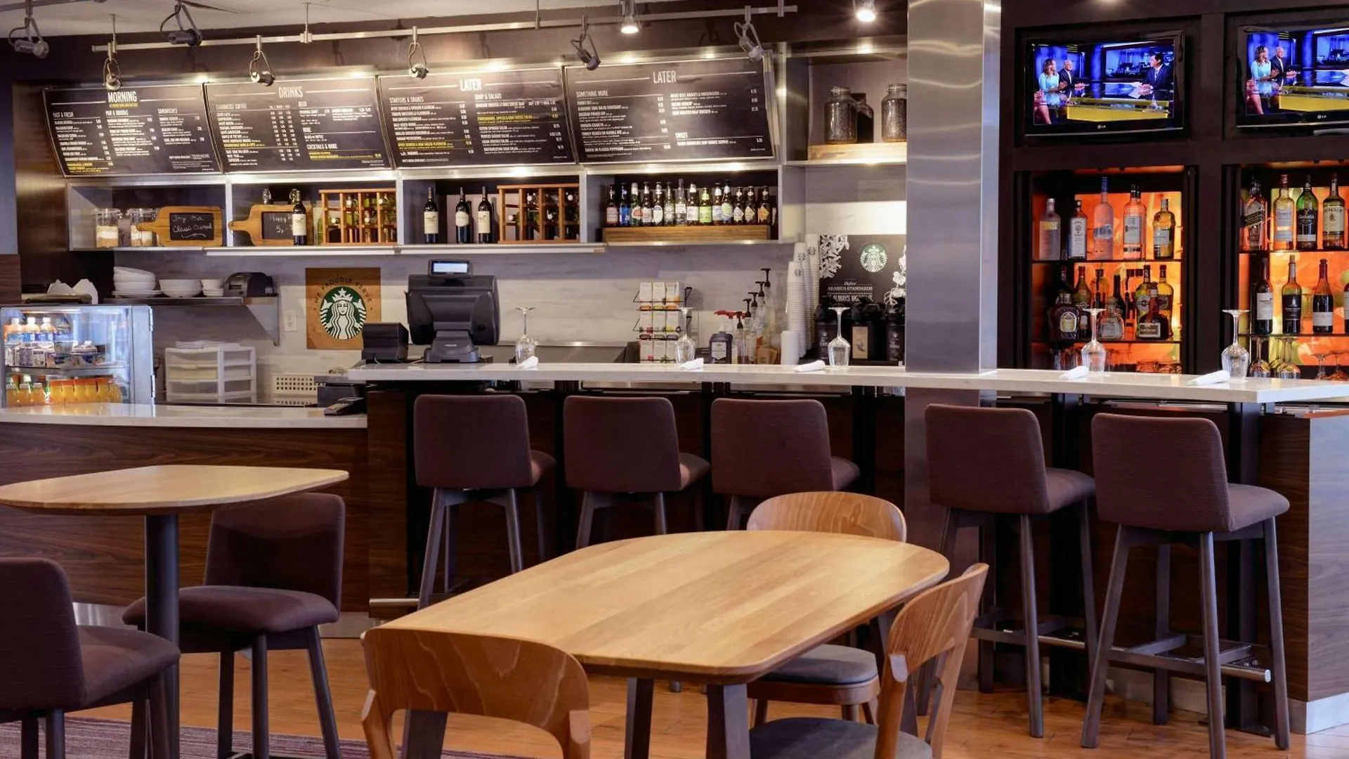 The American Commons at Sonesta Select restaurant serves American food. At the bar, you can select from a range of fine drinks.
